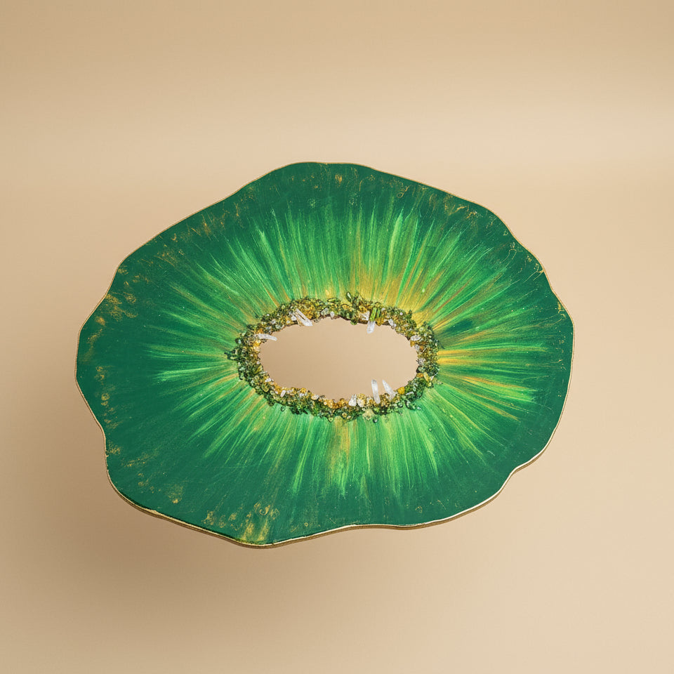 Laga med pouring cup-malingsteknikk blanda med harpiks, mica-pulver og maling.