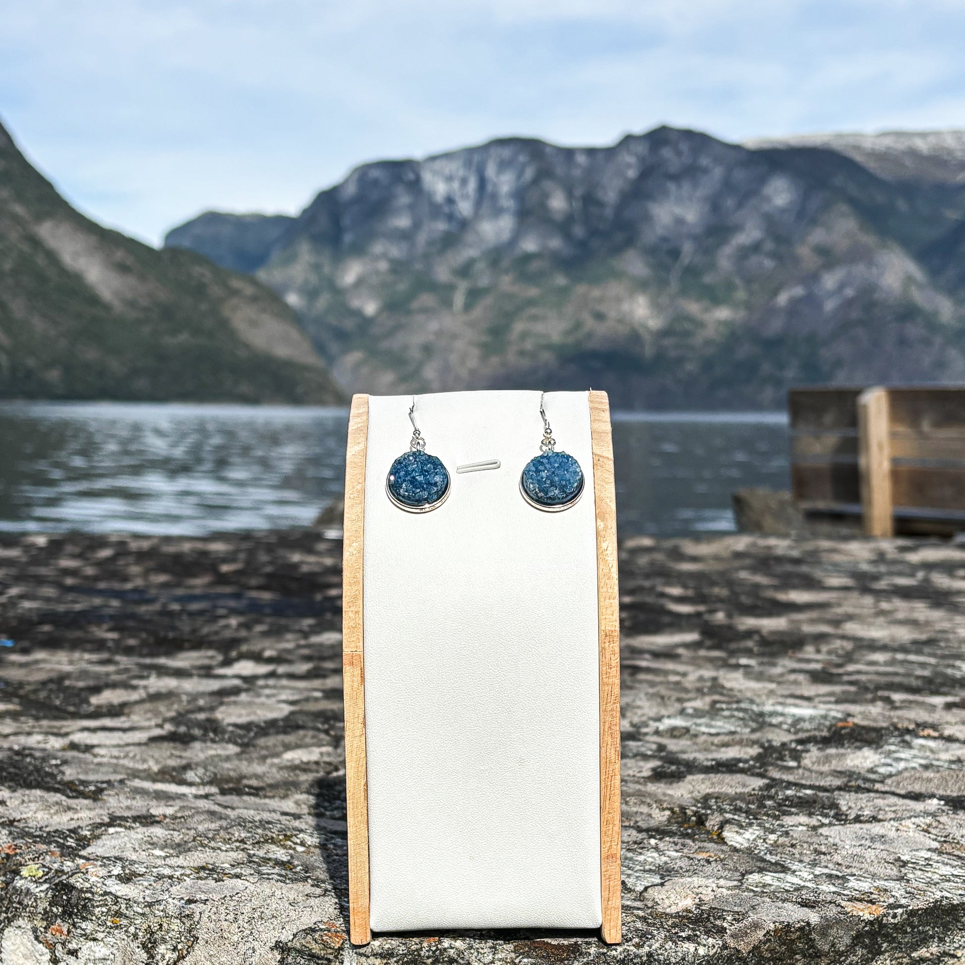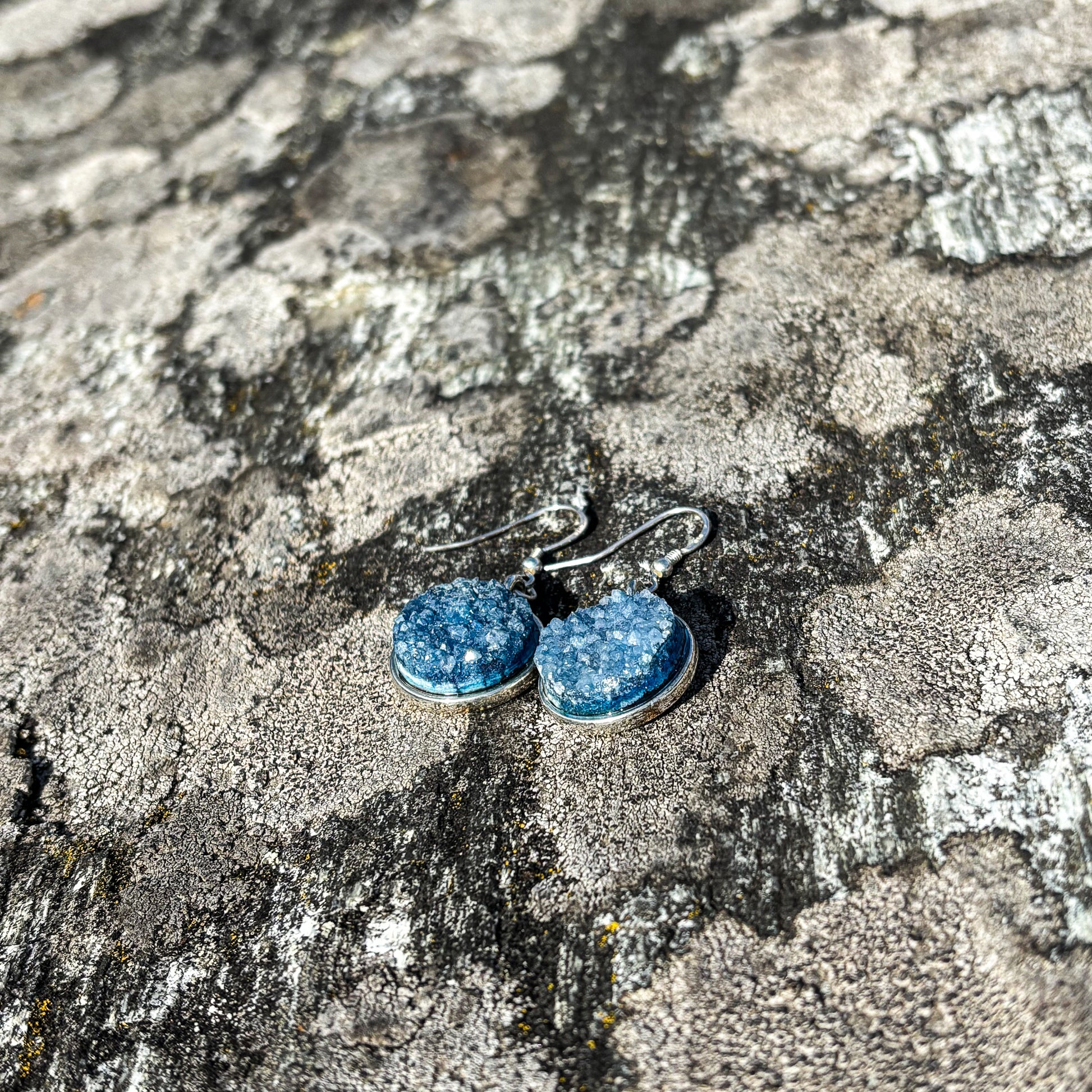 Agate druzy teal blue 16mm earrings