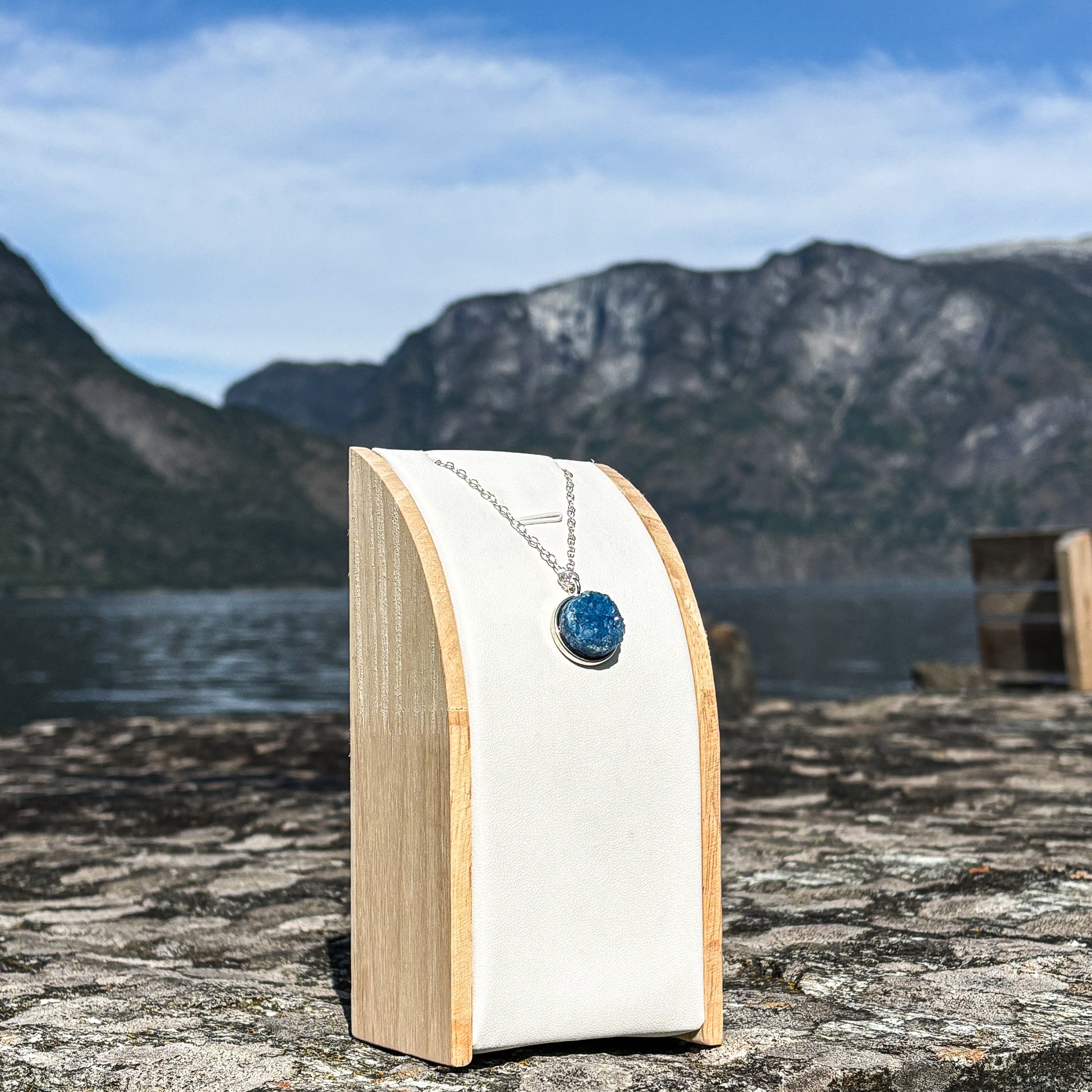Stones come from India and are hand carved and hand polished by craftsman there and assembled onto necklaces in Aurland