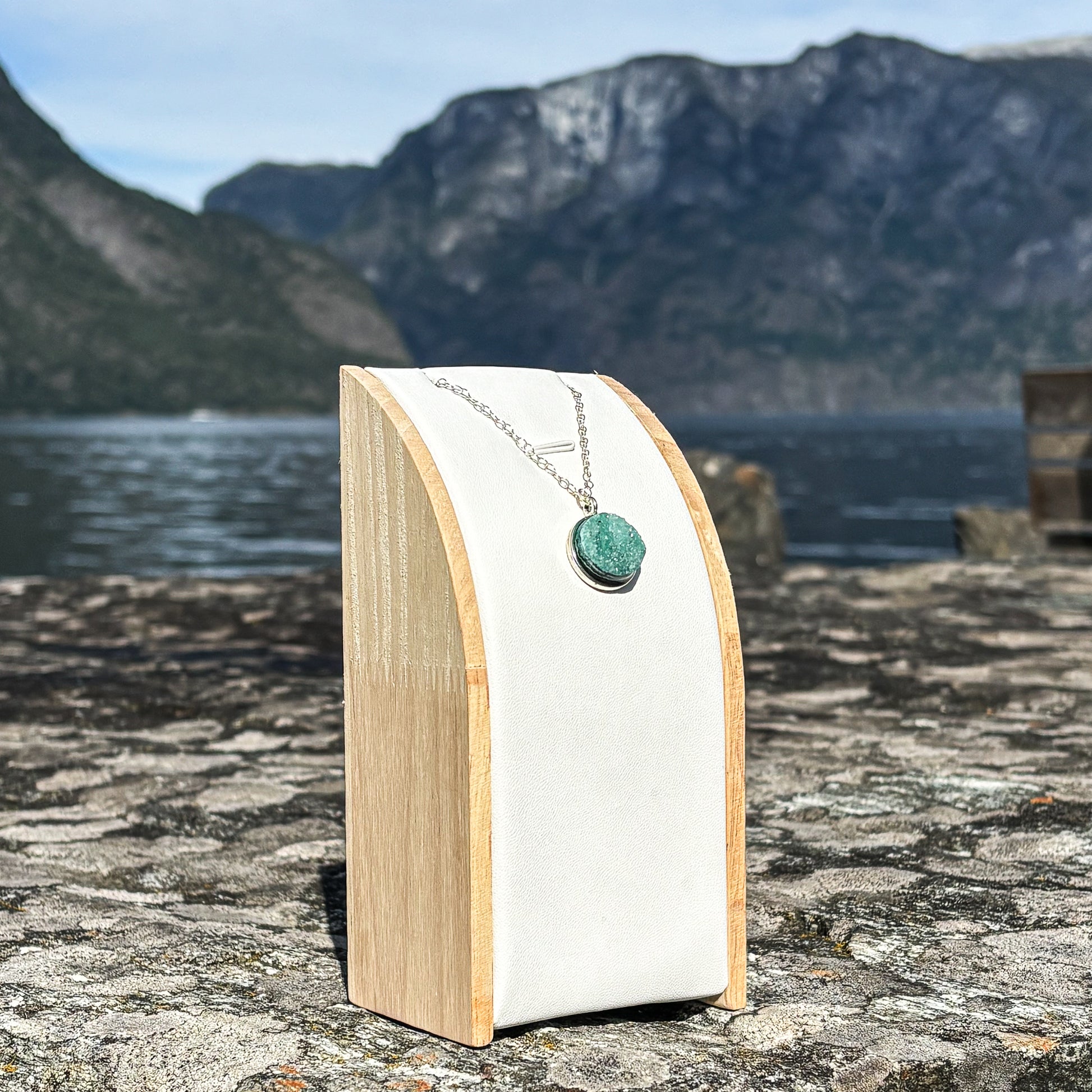 Stones come from India and are hand carved and hand polished by craftsman there and assembled onto necklaces in Aurland