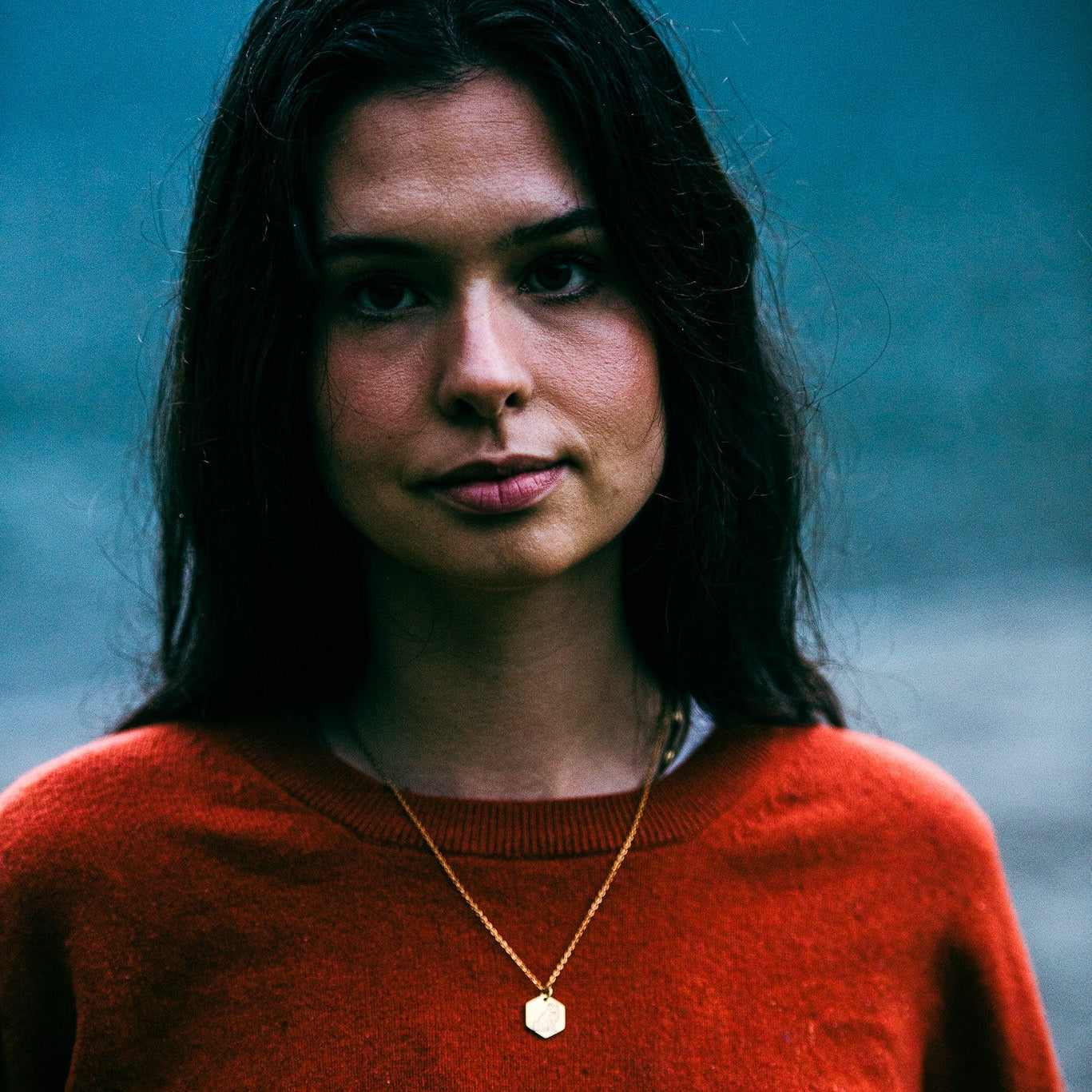 Arctic fox on 16mm hexagon pendant hanging on 45cm chain