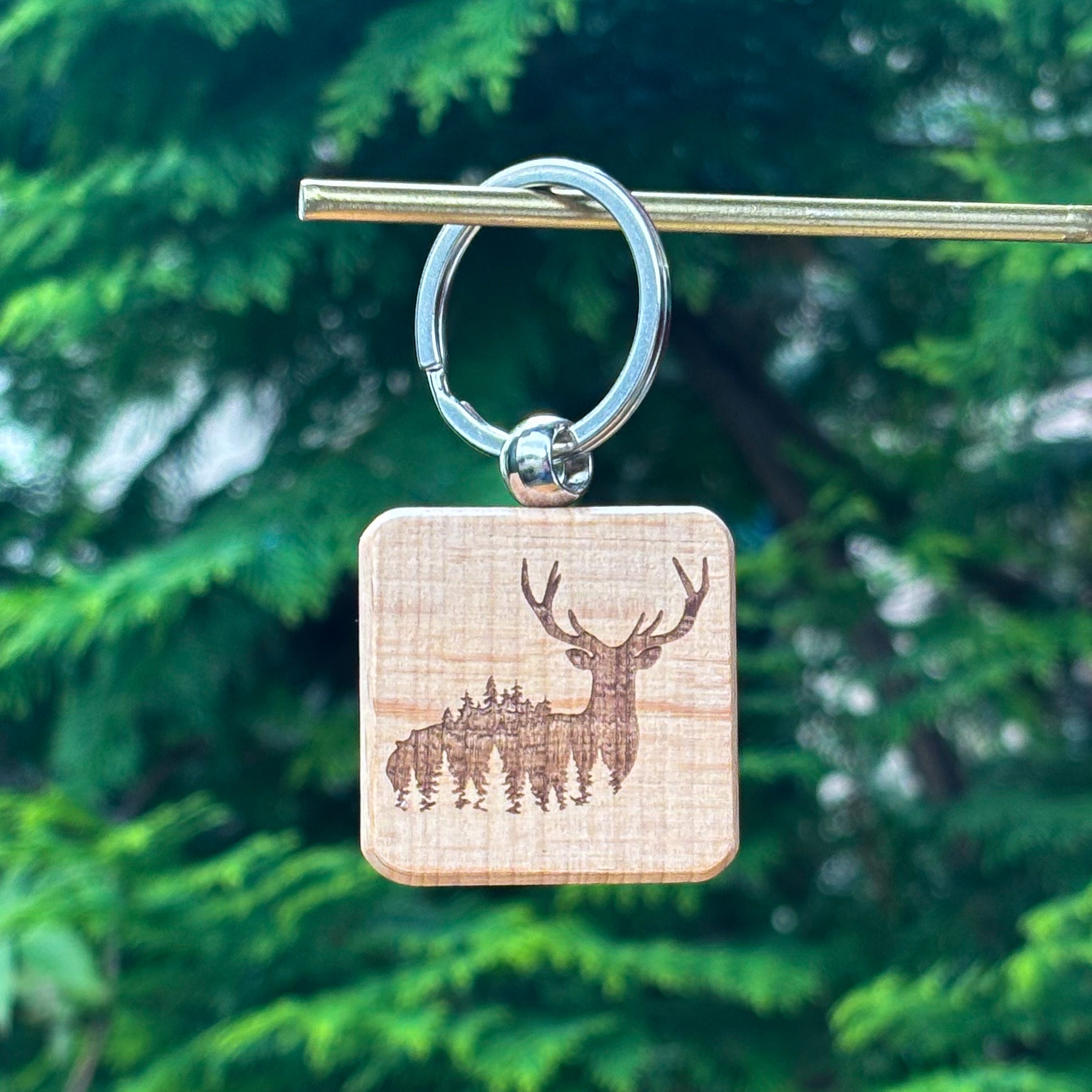 Reindeer intertwined with trees 38X38mm square wooden keychain