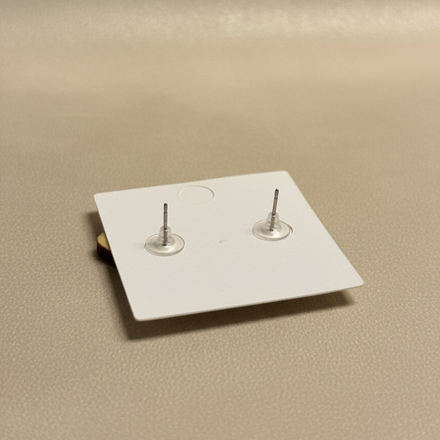 Plywood, 925 silver stud base, silikone back, resin glue