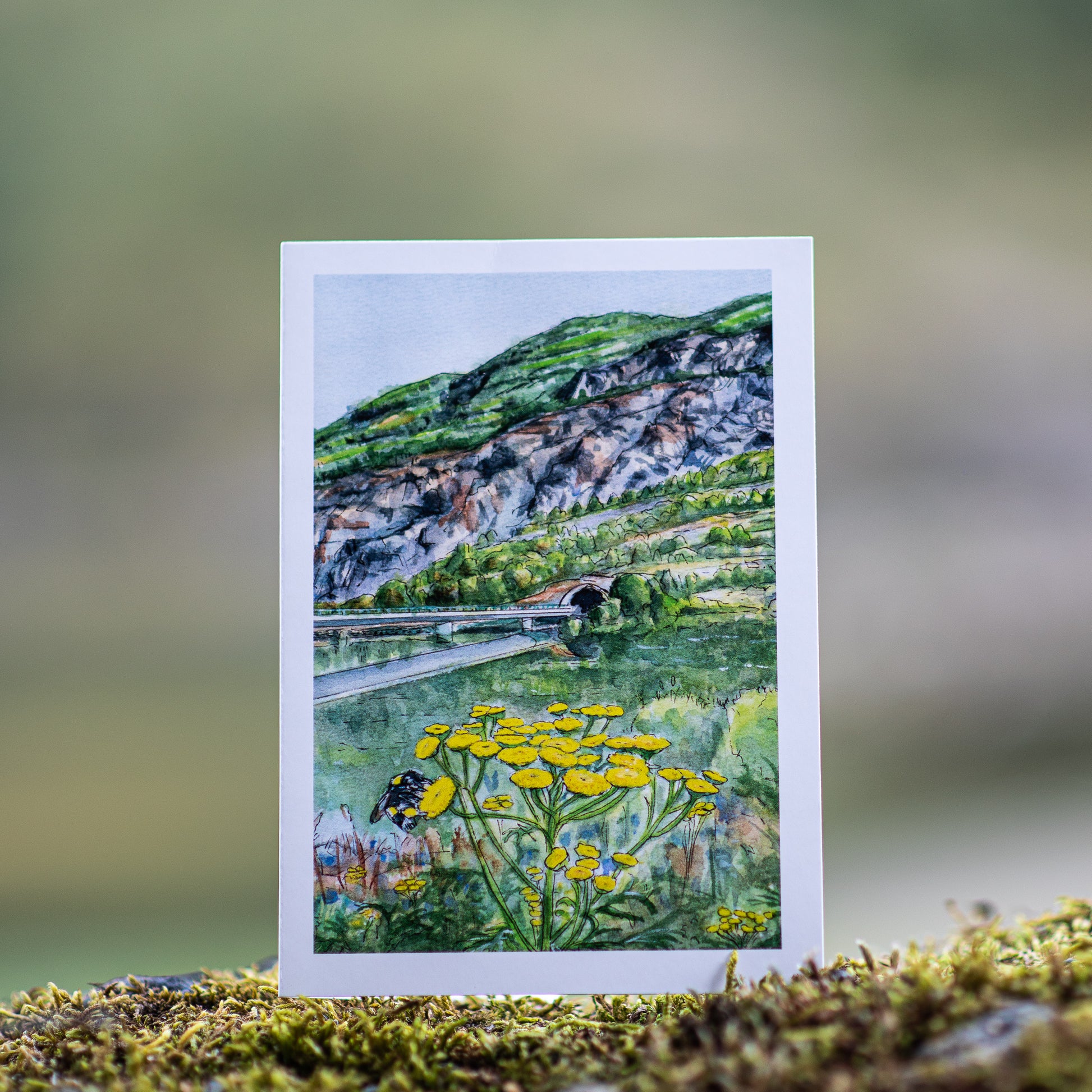 Scenery card- Bumblee bee on Tansy overlooking tunnel to Ardal