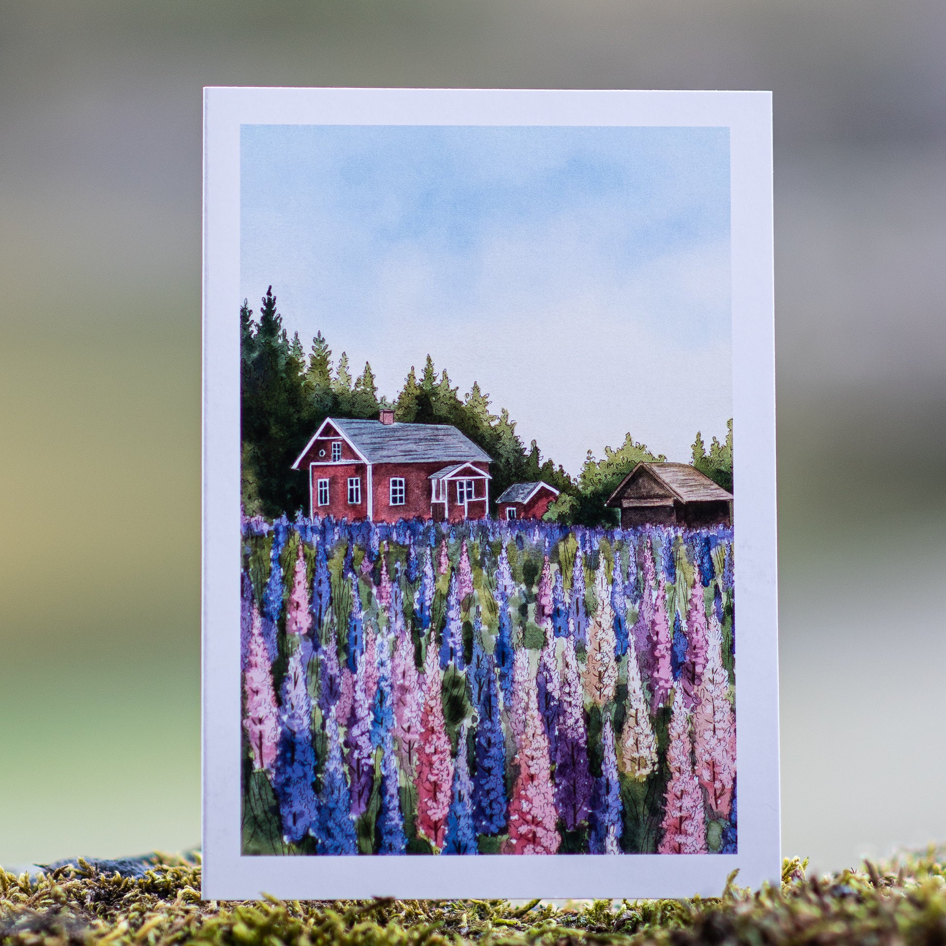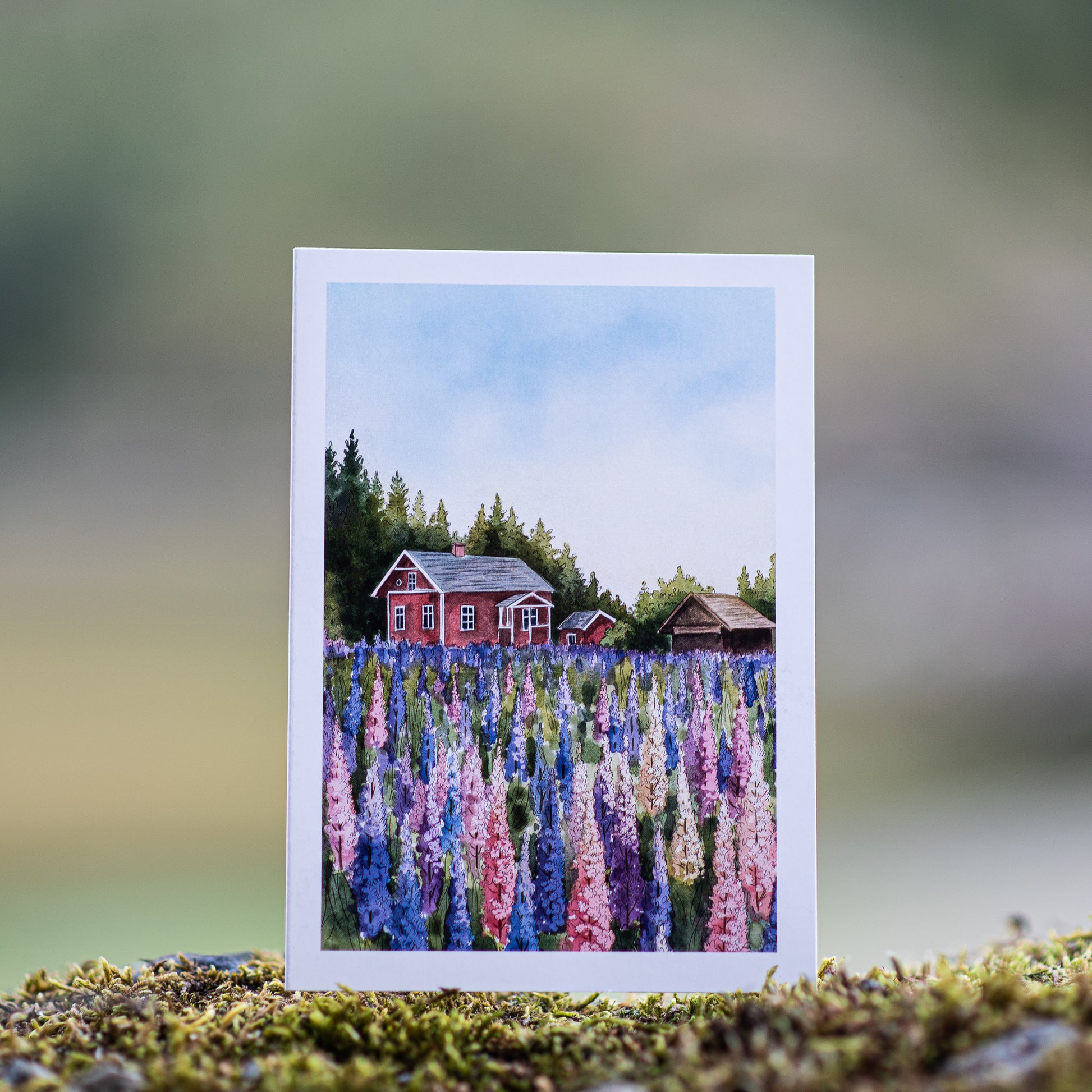 Wonders of Norway cards collection has been created when from an idea came to me in times when I did resin art. I used to walk around endlessly in search for perfect flowers to use in my jewellery and there idea came to turn my photographs into visual art. Cards are digitally watercolor illustrated and then printed.